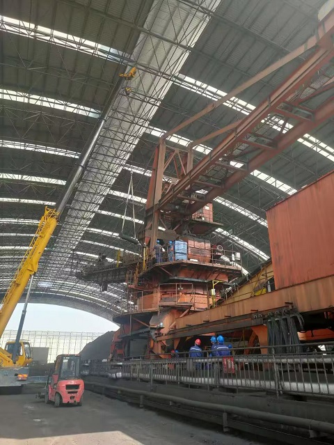 近日,淮北平山电厂A斗轮机运行加仓过程中,斗轮机胶带跑偏现象较为严重,经检查发现为斗轮机改向滚筒包胶磨损严重导致,为不影响正常生产,尽快恢复运行,皖能运检平山项目公司立即将此情况汇报至燃管部,并制定抢修计划。
