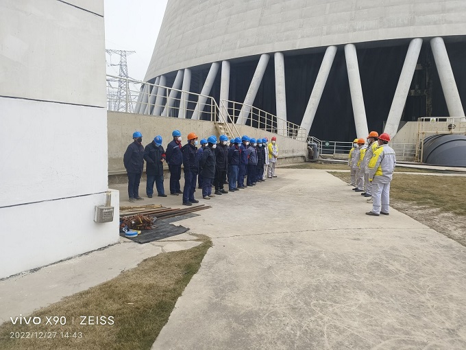 为预防和控制循环水系统因雨雪冰冻天气造成设备损坏和停机的潜在隐患,确保冷水塔前池入口在因冰冻而堵塞的情况下能迅速得到应急处理,12月29日,皖能运检板集项目公司汽机专业开展了防寒防冻专项排查与整治的专项应急演练。