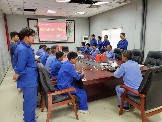 签字仪式开始前,白锡明首先对实习生入职一个月来的工作和生活情况进行了详细了解,就开展导师带徒签字仪式的意义、目的、要求进行了详细说明。随后,项目公司总经理助理赵德建代表项目公司宣读了《导师带徒协议书》,并就协议书中的合同期限、导师责任义务、徒弟责任义务、奖惩条款及协议解除条款向师徒双方进行了详细讲解,对师徒双方提出的问题进行了具体答疑。由各专业推荐的专业技术精湛、业务能力强、工作认真负责的专业技术人员,按照一对一结对、精准培养的方式,分别同实习生签订了《导师带徒协议书》。