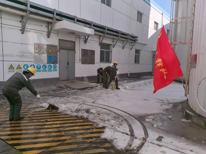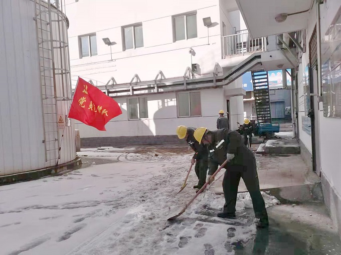 11月5日晚,山西朔州地区突降大雪,积雪最深处达100毫米,同时因疫情防控原因,皖能运检平朔项目部党支部无法立即组织人员清雪。11月10日一早,厂区宣布疫情警报解除,项目党支部书记邓志强立即来到现场查看积雪情况,发现部分区域积雪已经结冰,且覆盖面较广,人员难以绕行。为便于职工行走,防止人员滑跌受伤,平朔项目部党支部决定组织党员突击队清扫路面积雪。党员突击队充分发挥党员模范带头作用和党支部战斗堡垒作用,任劳任怨、齐心协力,经过近两个小时的努力,先后完成除盐水箱侧巡检路线、燃油泵房侧巡检路线及化学楼主楼通主路阴侧路面清扫,有效保证了职工的出行安全。