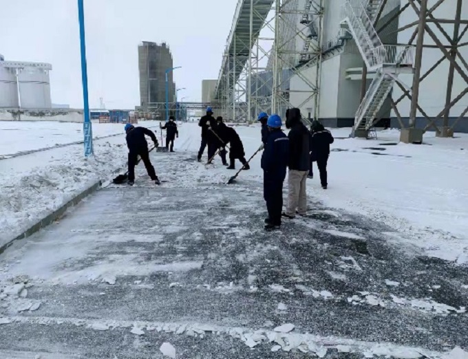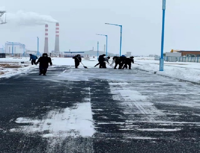 受冷空气影响,11月6日夜间,内蒙古锡林浩特市出现暴雪、强降温天气,最低温度降至零下20℃,一场大雪虽然为胜利电厂披上了美丽的银装,但同时也造成厂区路面大量积雪、道路结冰,给人员及车辆安全出行带来了极大不便。