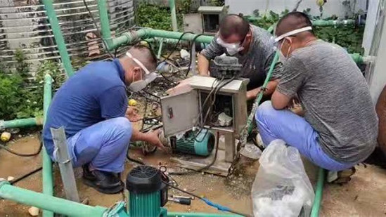 抢修过程中,来自多个专业的抢修人员首先检查热水管路和供水泵,一边拆除管道连接,查看管道是否存在堵塞、滴漏的情况,一边检查水泵本体以及水泵控制电路是否存在问题,最终判断是由于水泵结垢堵塞,造成热水供应量减少。复杂的工作环境给检修工作带来了极大的不便,抢修人员们长时间弯着腰,以半蹲姿势进行检修,同时要克服脚底打滑、踩踏不稳等重重困难,经过数个小时的作业,供水终于恢复正常。“有热水了,你们辛苦了,谢谢!”听到同事们这样说,抢修人员的心终于放下了,做到工完料净场地清后,大家又继续投入到了日常工作中。