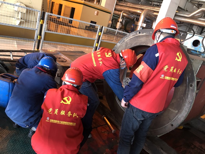 党员服务队首先对检修现场人员自我防护,检修安全用电,有限空间及高空作业等重要危险点进行全面排查,对检修作业指导书进行检查,确保检修工艺。同时对检修现场工作人员进行思想疏导,要求大家要克服麻痹大意思想,工作中相互提醒,站好节前检修最后一班岗,齐心协力按照节点完成检修任务。