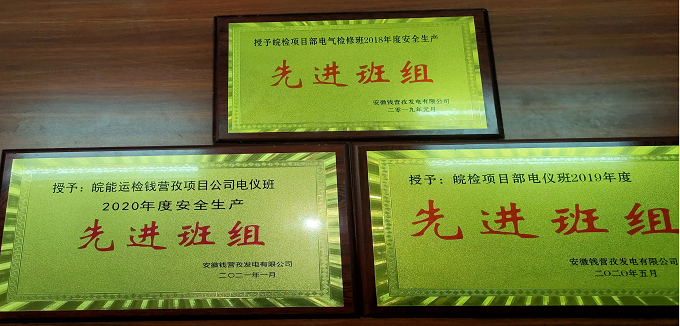 皖能运检钱营孜项目部公司电仪班自2017年10月成立以来,始终把安全生产作为工作的核心,牢固树立“团结、协作、安全、奉献” 的工作理念,从基建时期的设备调试,到运行初期的技术改造,再到稳定运行的日常维护,全班职工在班组长的带领下,坚持以人为本、从我做起、分工明确、责任到人,实现了零工伤,零事故的责任目标,出色完成了各项工作任务,连续三年荣获安徽钱营孜发电有限公司“先进班组”称号。