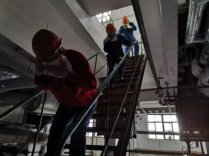 演练开始前,项目公司安全管理人员带领大家首先学习了火灾现场逃生15种方法,包括逆风疏散法、绳索自救法、匍匐前进法等,需要根据火灾现场不同情况采取安全有效的方式迅速逃离火场。演练模拟汽轮机油系统发生火灾,经抢救火势没有得到有效控制,组织现场人员迅速撤离。由于火灾现场存在浓烟和燃烧产生的有害气体,现场人员采用湿毛巾捂住口鼻法,沿着安全通道和楼梯迅速有序逃离火场,避免发生人员踩踏事故。