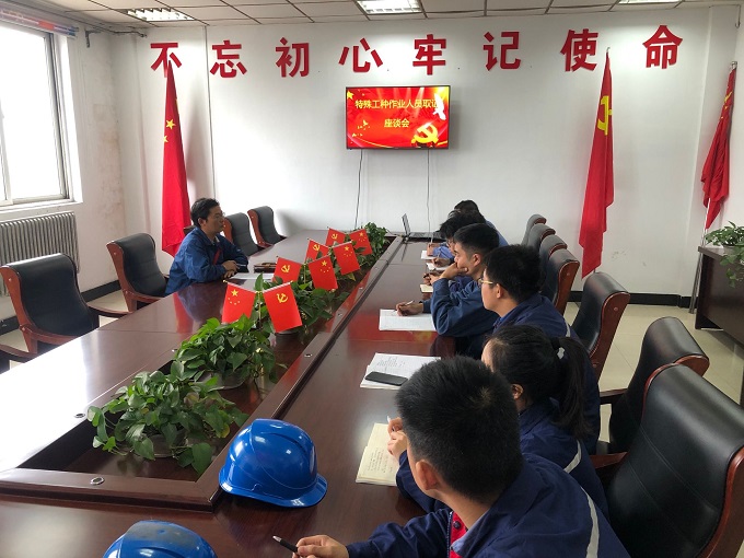 近日,皖能运检临涣项目公司党支部组织特殊工种高压电工取证人员召开主题为“积极参与取证,练就过硬本领,做好职业规划,实现伟大梦想”座谈会。