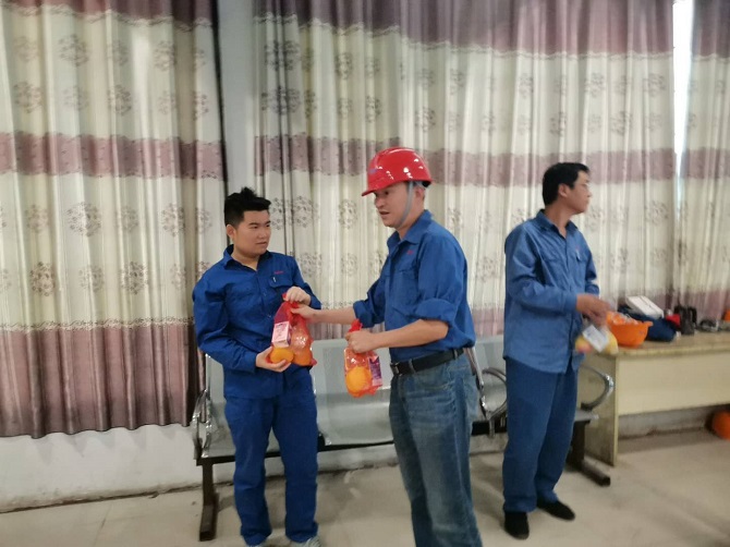 “中秋”、“国庆”两节相约而至。节日期间,新集项目公司仍有许多员工像往常一样,坚守在工作岗位。为切实体现公司的温暖与关怀,10月1日上午,由新集项目公司总经理张德宏牵头,看望和慰问节日期间坚守岗位一线的职工。