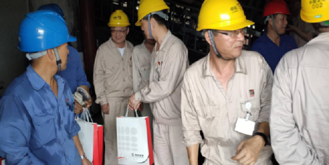 8月18日,淮北申皖公司总经理刘先航深入为平山项目公司生产一线为职工送来慰问品,刘先航亲自将将冰爽的饮料和防暑降温所需的人丹和清凉油交到现场工作员工的手中,为长期在高温环境下辛勤工作的职工送来了清凉和关怀。