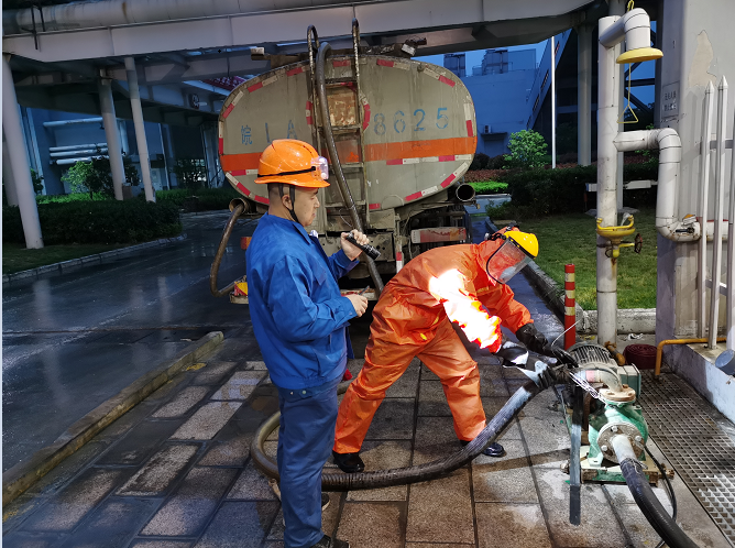 平山项目部工作人员巡检时发现精处理#1酸罐出口门处有酸液漏出,随即汇报当班班长。班长在接到汇报时立即启动酸碱泄露处理预案,联系检修人员处理。由于盐酸有着强腐蚀性,酸液泄露更是具有不可控制的危险性。而且酸罐出口设计为单开门,必须进行倒罐作业。在这危急关头化学运行班组共产党员陈灵磊挺身而出,冲在最前面,他说:“所有危险的操作,我来,你们配合我工作就行”,其他抢修人员备受鼓舞,干劲十足。历时9个小时的抢修作业,完成倒灌工作,把酸罐泄露的风险排除。