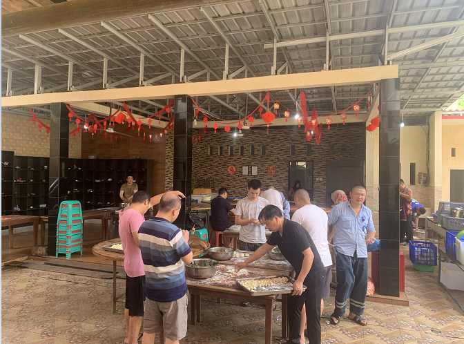 1月23日上午,项目部开始为大年三十的年夜饭做准备,大家各有分工,有的负责切菜、拌馅儿、和面,为项目人员包饺子;有的则负责布置现场的装饰,为项目部生活区营造节日气氛。