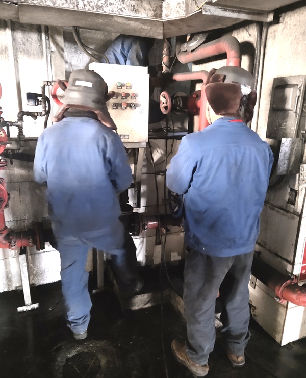 12月7日,周末,北一电厂输煤6号栈桥内,五彩湾项目部青年突击队6名青年员工正在紧张的工作着,项目部地处新疆戈壁滩,12月份气温最低已达零下20度,栈桥内虽然暖气已通,但6号栈桥内温度一直保持不住,温度很低,冲洗过的栈桥经常结冰,经过排查发现是廊道外与保温层之间未封堵造成的,由于施工单位已撤离无人处理,经与业主沟通,由业主方提供材料,项目部组织6名员工组成青年突击队进行抢修。