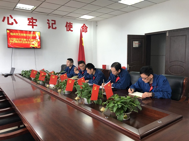 11月25日,皖能运检临涣项目公司党支部召开支部党员大会,按照皖能运检公司党委要求,传达了党委印发的《学习宣传贯彻党的十九届四中全会精神实施方案》,重点学习了《中国共产党第十九届中央委员会第四次全体会议公报》。