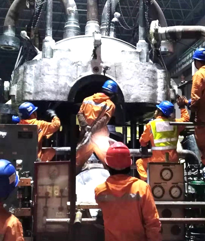 21点30分,随着起重工的一声哨响,高中压缸缓缓起吊,慢慢的进行扣缸合缸,22点10分,高中压缸扣缸一气呵成,扣缸过程中未出现任何差错,得到了业主领导、监理的高度赞扬。(付世润)