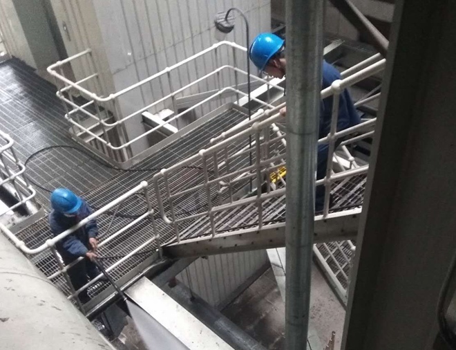 近期,板集项目公司根据业主单位板集电厂设备设施卫生大清扫、大整治的具体要求,积极行动,对主厂房内汽机区域和锅炉区域内的设备设施、管道、钢梁、平台、栏杆、楼梯及边角、拐角卫生进行了一次全面集中整治工作。