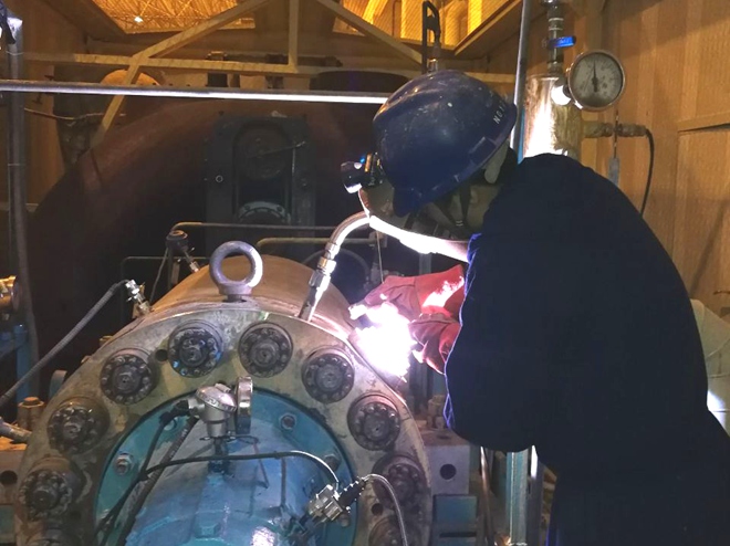 2月3日,汽机班长张烛韬在对 #1机组巡视检查时发现了#1机A汽泵平衡管处冒汽经仔细检查是平衡管有一砂眼,项目部得知后积极组织人员连夜进行补焊处理,避免事故的扩大。稳定了#1机组安全运行。
