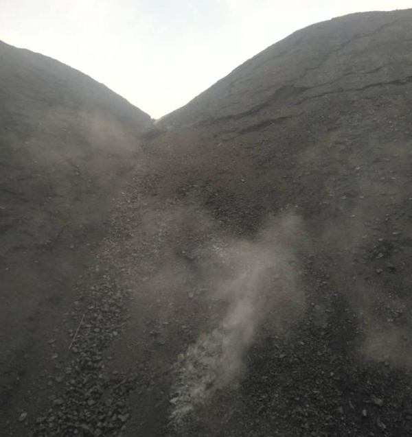 图为煤场煤堆发生自燃现场
