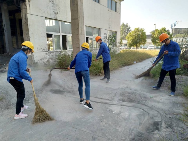 活动开始,青年志愿者们手拿扫帚、抹布、铁锹、水桶等工具,对厂区公共场所和卫生死角进行清理。大家分工明确,有的捡拾绿化带里垃圾,有的擦拭宣传橱窗,有的清理道路积灰,有的清扫垃圾。青年志愿者们发挥了不怕脏、不怕累的精神,认真地清理厂区卫生。