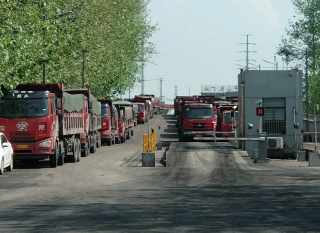 图为排着长龙的运煤车队