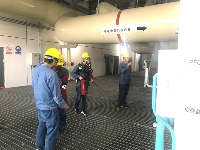 皖能运检钱营孜项目公司进行汽轮机油系统着火应急演习