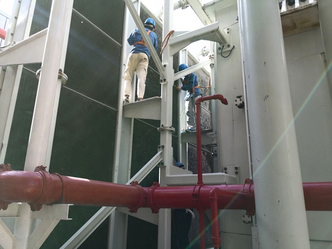 皖能运检安庆二期项目部对#4机主变冷却器进行有效清理