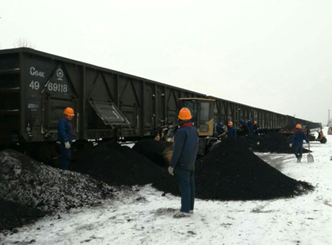 2018年1月25日,淮北平山地区天气严寒突降中雪,气温降至零下5°C。上午,平山项目部接到厂外卸煤值班人员工作请求,由于天气寒冷,冻煤严重需要增加人员人工清理冻煤。