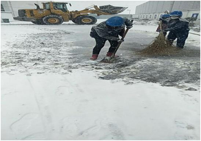 2018年1月24日晚,板集电厂主要干道被积雪全部覆盖,部分区域地面出现了冰冻湿滑情况,对上班人员的人身安全和现场设备的安全运行产生了极大的安全隐患。12月25日上午一上班,皖能运检板集项目公司组织员工清理积雪,根据各专业所辖区域道路冰雪堆积情况,责任到人,清理现场道路及设备积雪,还对重点区域楼梯铺设防滑毯,防止出现人身伤害和设备设施冻坏现象,把冰雪造成的损失降低到最小值。(魏 朋)