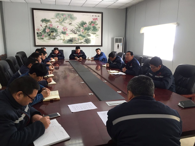 2018年1月5日上午,板集项目公司召开雨雪冰冻天气三级应急预案启动动员会议,项目公司总经理周道平主持会议,项目公司各专业主管、专工及项目公司办公室全体管理人员参加会议。