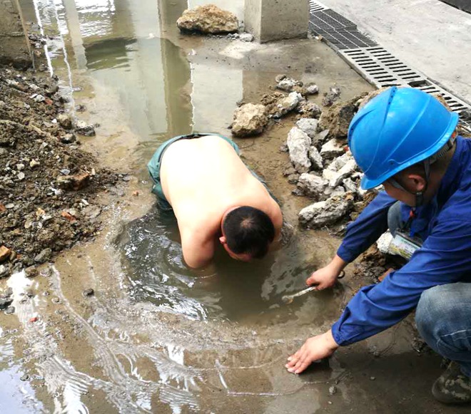 7月21日,锅炉二班在巡检中发现二期煤泥泵送系统冷却水回水至工业水母管处有漏水现象,经检查确认是管道长期腐蚀造成的。由于处于工业水母管上,且机组处在高负荷运行,无法进行隔离,只能采取清淤堵漏的方式处理。此时室外正处37℃的高温。维护人员郭玉武师傅主动请缨,身先士卒,卷起裤脚,脱掉上衣,进入水坑内开展抢险工作,利用泄漏处置的专用夹具,采取带压堵漏的方式进行处理,经过2个多小时的连续抢修,最终完成了抢修工作,此时的郭师傅浑身上下全是污泥,满脸都是汗水和泥水,他用行动践行着“专业、敬业、文明”的皖能运检公司员工的行为准则,大家都一致赞道:郭师傅,好样的!(刘韶光)