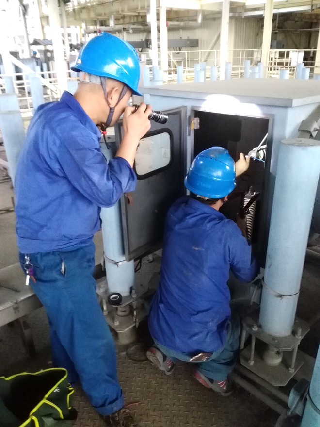 抢修就是命令,国安项目部立即组织抢修小组对其进行风险评估并制定出检修方案,即对损坏的部件进行更换。抢修人员正在抢修过程中突降暴雨,尽管户外雷雨交加,电除尘楼层却闷热难当,抢修人员以高度的责任心,克服重重困难,顾不上雨水与汗水湿透自己的工作服,经过六个小时的奋战,完成了本次电除尘的抢修任务。