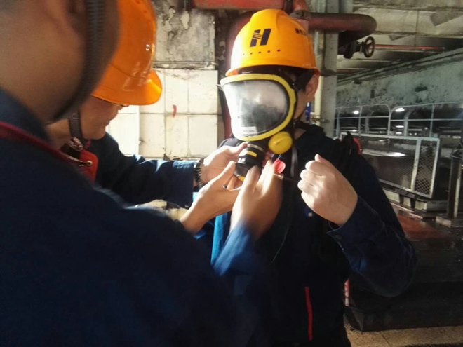 皖能运检华能太仓项目部输煤专业近年来的入厂煤多为高挥发份低热值煤种,运行过程中极易造成系统内的积粉,防火工作是现在安全生产的重中之重,一但在生产作业过程中,突发火情,现场便有大量的浓烟和有毒气体,如有工作人员正处在生产现场,需急救人员应对如何进行和正确佩戴使用正压式呼吸器,并熟练掌握应急处理办法,更快的有效控制火情。5月15日上午9时,项目部组织开展“人员急救正压式呼吸器预案演练”活动,指导大家提高应急情况时正确处理能力,牢固树立安全防范意识。(周云)