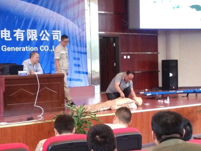 9月13日下午,皖能运检发耳项目公司组织9名员工,积极参加发耳电厂安监部、总经部联合组织的2016年紧急救护知识培训。培训邀请了六盘水市人民医院急诊科副主任刘昌举就徒手急救的包括心肺复苏法、电击伤急救、溺水急救、烧烫伤急救、一氧化碳中毒急救、酒精中毒急救、虫毒急救等意外事件急救方法等知识进行了详细的讲解,并对心肺复苏法的实际操作要领进行了现场演练。培训过程中,项目公司总经理程杰、员工代表胡斌亲自到演练台上进行示范性演练。整个培训过程持续一个半小时,使所有参训人员既学到紧急救护的理论知识,更通过实操及观摩掌握了相关的紧急救护作业技能,提高了员工的紧急救护能力,达到了预期培训目的。(任振东)