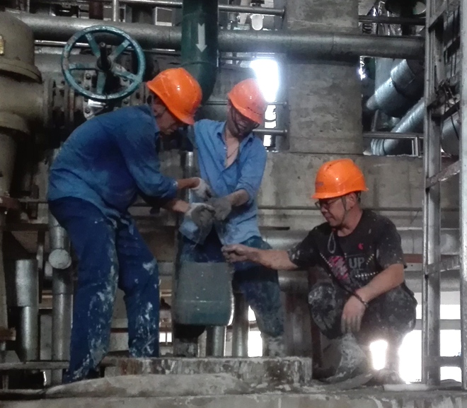 一个个敬业在检修现场的员工,汗水湿透了衣衫他们没有退缩,手掌磨出了茧子他们没有叫累,继续认真地工作着……因为在他们心中只有一个念头:那就是按计划、安全优质完成此次检修任务。(王立芹)
