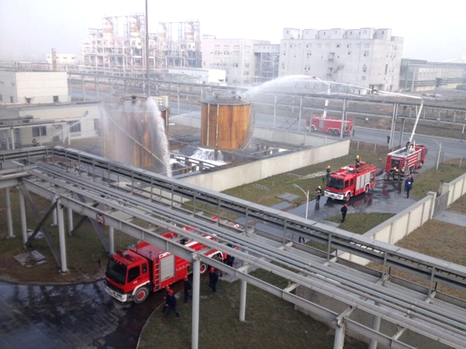 12月30日,华塑项目公司组织开展“油罐区着火”消防演练,热电厂各外委单位及园区消防大队参加了演练。
