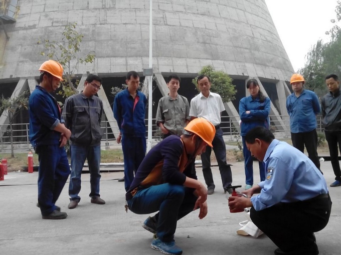 项目公司领导高度重视此次消防培训及演练,特邀请新集二矿保卫科班长来现场指导配合。老班长为参训人员讲授了火灾发生的原因和特点、防火注意事项、逃生疏散技巧等知识。着重阐述了灭火器的使用方法及灭火器救火的要点,并带领员工针对初期火灾现场扑救演示了常见灭火器材的使用方法。面对预置的“火灾”场景,演练人员沉着冷静,快速提起灭火器,拔掉保险,一手紧握橡胶软管,一手按下压板,对准火焰根部,左右扫射,完成消防任务。