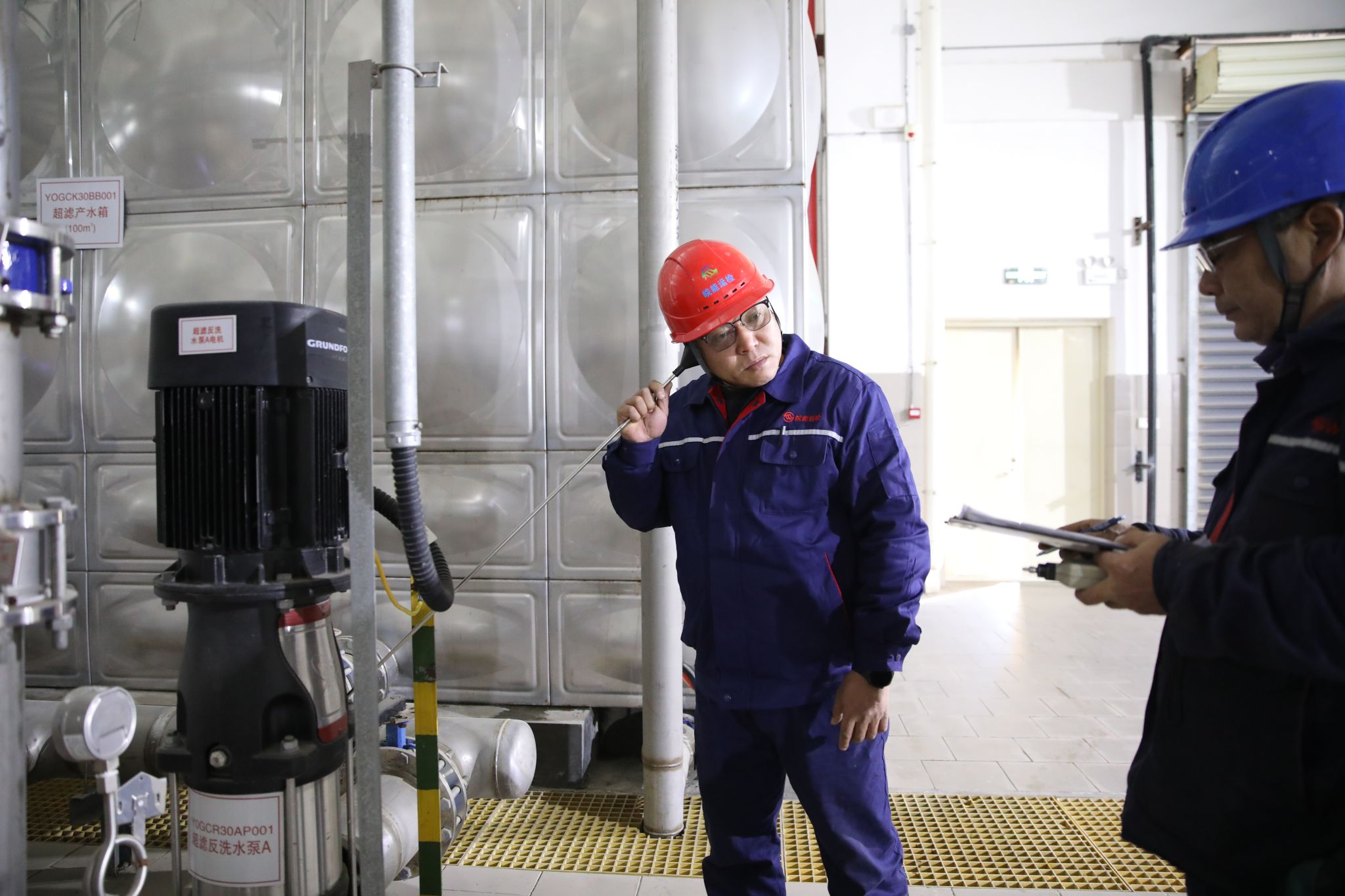 “一天巡检两次,其中上午和下午各一次,共计三个小时。”杨荣春称,巡检项目包括汽机房、化学水处理间等等。