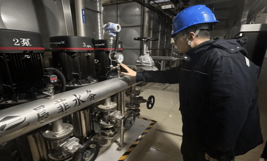 节前,师傅们带着他们反复排查设备、梳理巡检路线,还把每日工作细化成一张张流程单,让两位“新兵”少了许多慌乱。春节这几天,胡梦洋几乎一直守在中控屏前,电脑荧荧发亮,绿色是平稳的工况,蓝色是循环的冷水,哪怕压力值只波动0.01,她都要反复核对半天。赵一鸣的凌晨巡检也不轻松,手电筒在黑暗中劈开一道细细的光束,他裹紧工装,按背熟的路线逐一核查:配电柜指示灯,绿光如常;磁主机屏显,数据平稳;管井阀门,压力稳定。