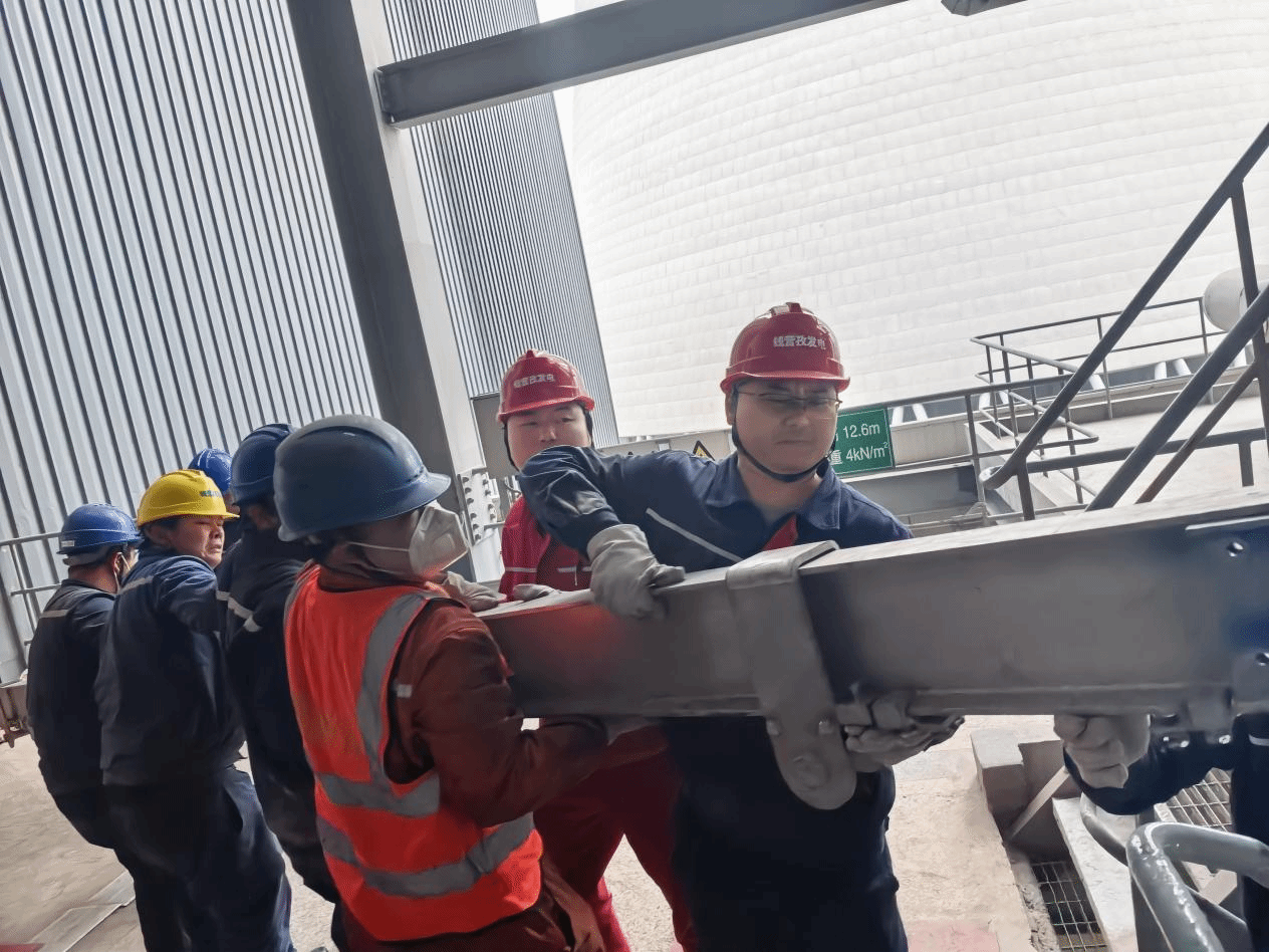 面对炉膛内空间狭小、光线不足、作业环境复杂等实际困难,服务队合理分工、密切配合,有序开展平台钢结构切割、拆解、构件吊运及现场清理等各项工作,全程严格把控作业质量,确保整个拆除过程安全、规范、高效,无任何安全隐患。