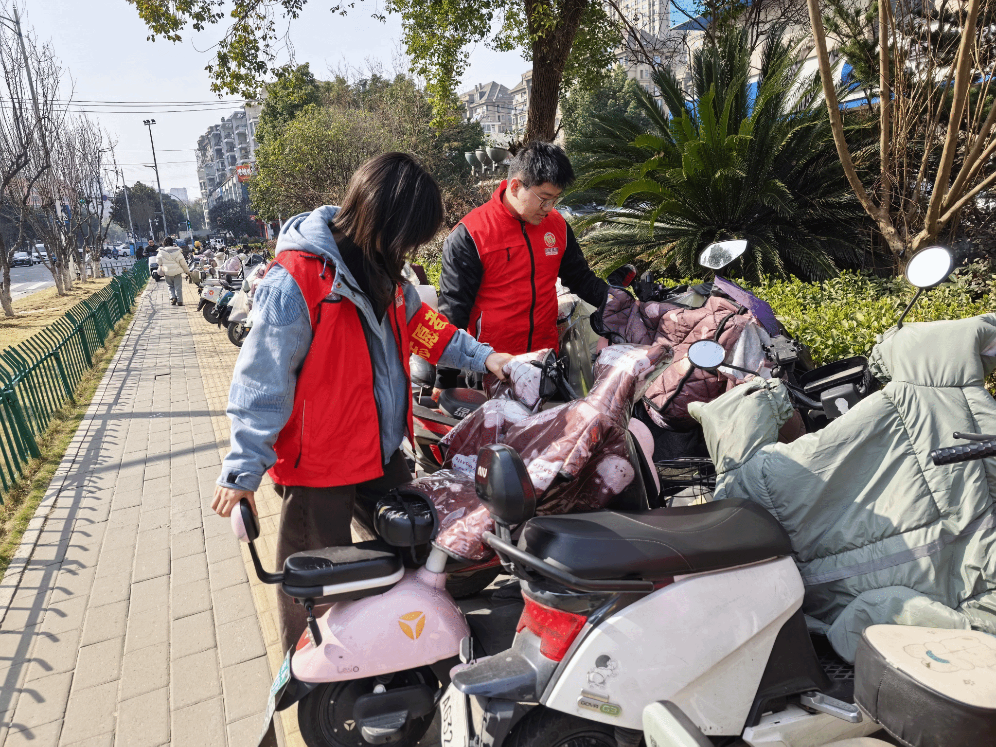 皖能运检恒发公司团支部联合检修分公司团支部组织在肥团员开展“弘扬雷锋精神规范停车秩序”活动。以公司大厦的出入口附近为重点,对占用盲道、堵塞消防通道的非机动车进行逐一规范摆放,将歪斜车辆扶正、归位至停车线内;对违规停放的机动车车主进行耐心劝导,讲解文明停车相关规定,引导车主将车辆停放在指定区域。