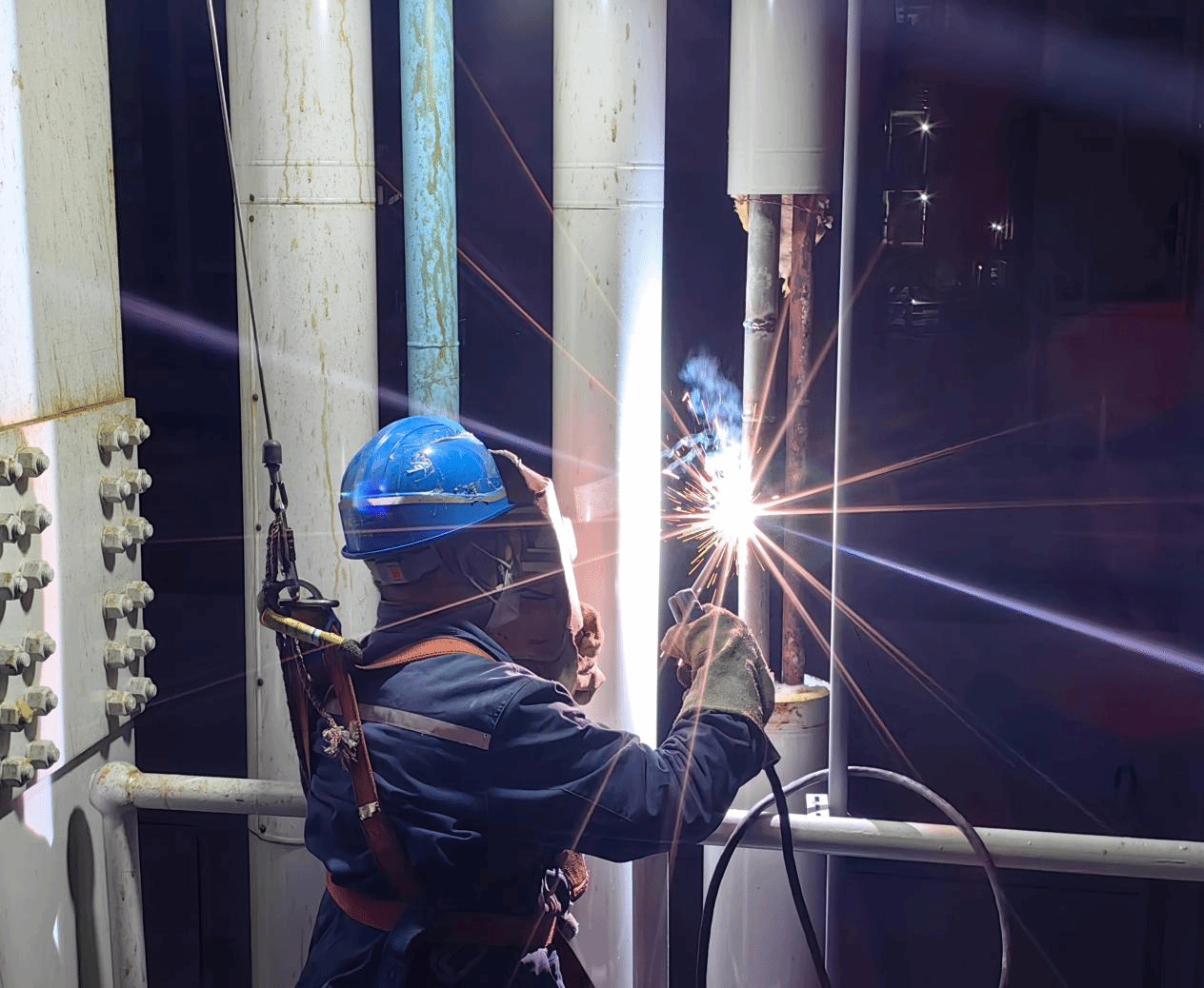 检修进行时|板集项目公司争分夺秒抢修脱硝管道