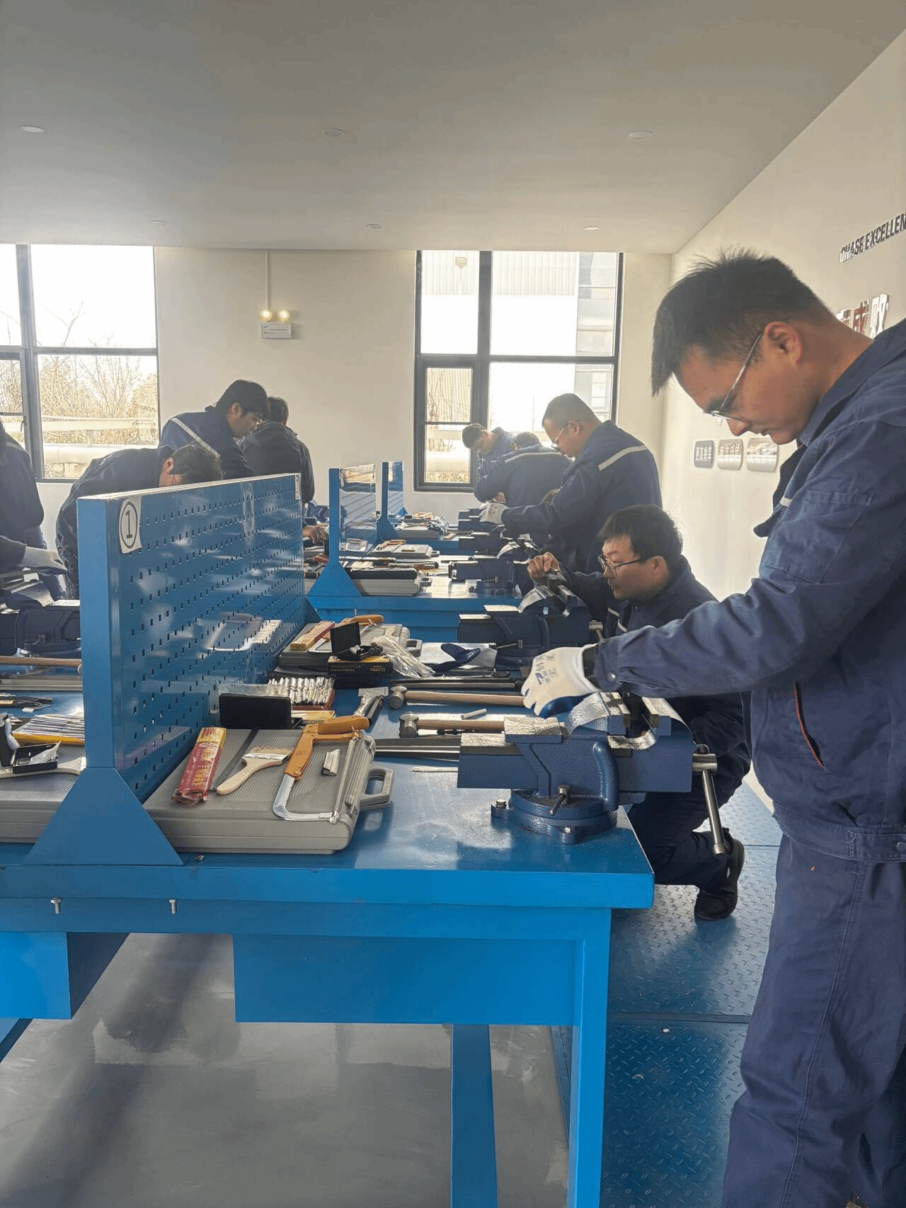 培训阶段,公司设计了系统化课程,由经验丰富的外聘专家授课,通过理论讲解与实操演示相结合的方式,深入浅出地解析了钳工核心知识与操作要点。