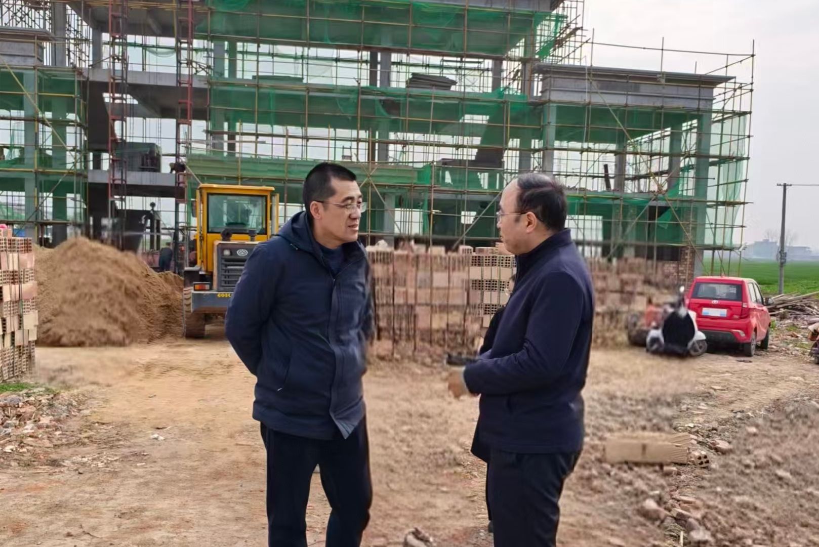座谈结束后,调研组实地考察了牛寨村建设中的党群服务中心,该中心拟在五一前建成,将成为服务党员群众、凝聚乡村合力的重要阵地。随后,调研组参观了新建成的村集体生产厂房和蔬菜大棚种植基地,现场了解了产业发展、集体经济培育及带动村民就业增收的具体情况。